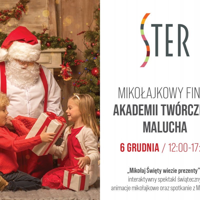 Zapraszamy na Mikołajkowy Finał Akademii Twórczego Malucha w CH Ster. Już w najbliższą sobotę, 6 grudnia, będziecie mogli spędzić z nami dzień pełen zabaw i atrakcji.
