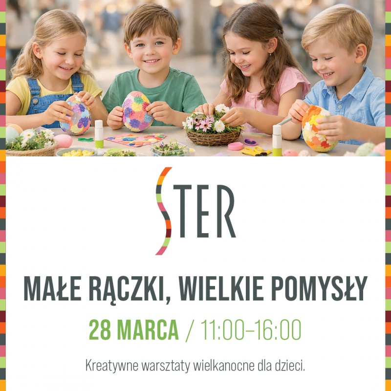 Mamy dla Waszych pociech pomysł na kreatywne spędzenie najbliższej soboty. Zapraszamy wszystkich najmłodszych na Warsztaty Wielkanocne, podczas których będziemy wspólnie przygotowywać świąteczne ozdoby.